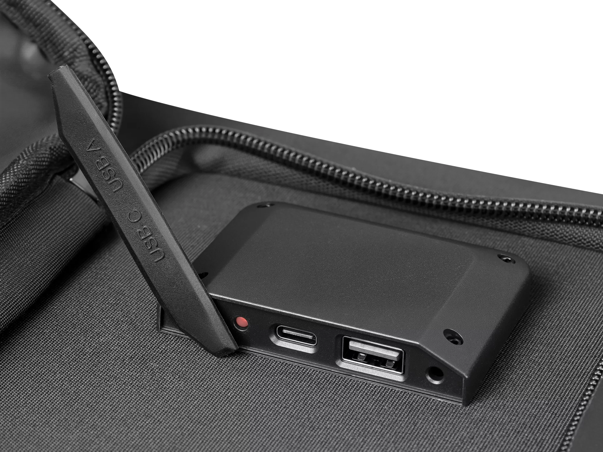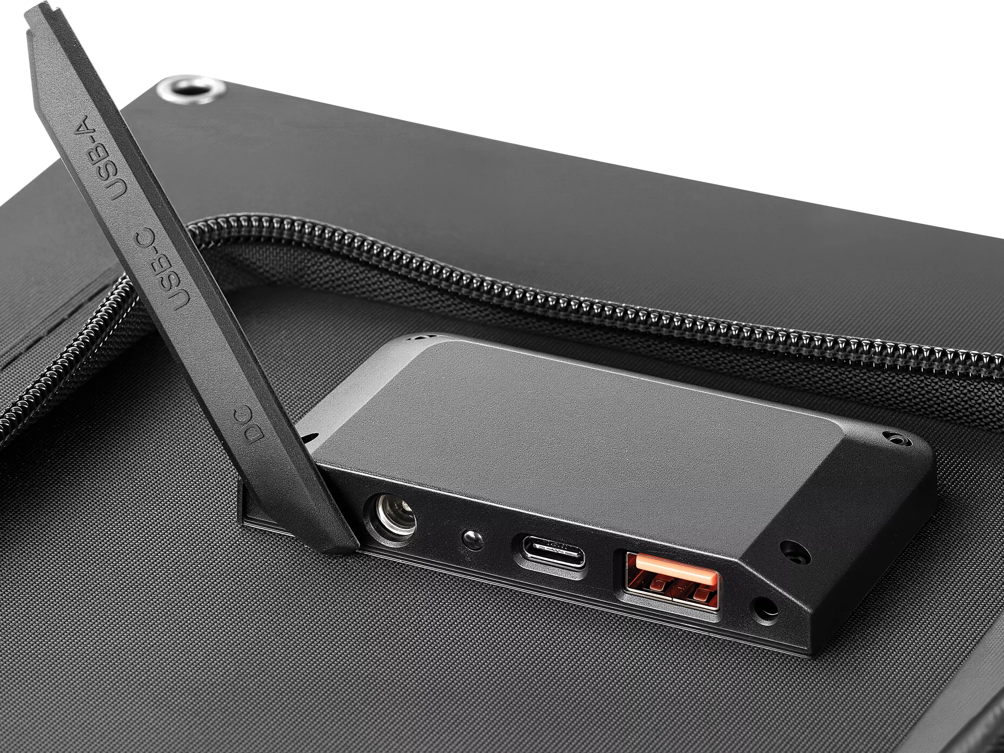 A töltőportok az egyik panel hátoldalán, egy cipzáras, vízálló tárolózsebben találhatók, amiben kisebb tárgyak, például telefon, pénztárca, igazolványok vagy akár egy kisebb power bank is elfér. A napelemes töltő tartós ETFE-bevonata magas hatékonyságot és hosszú élettartamot biztosít, még nehéz körülmények között is, amit az IP67-es por- és vízálló hitelesítés is igazol.